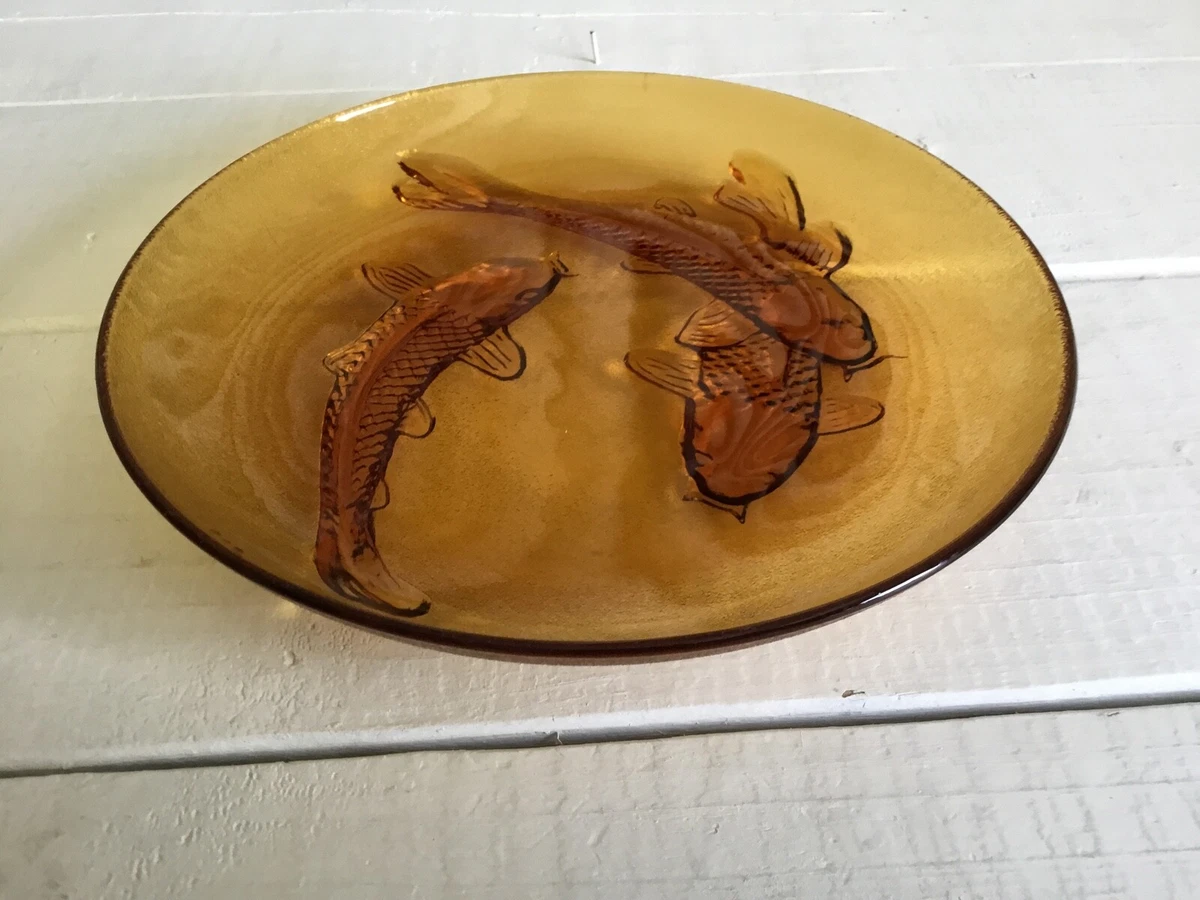 Amber Glass 3d Koi Fish 9 Decorative Plate Dish Embossed Vtg Kig Ebay